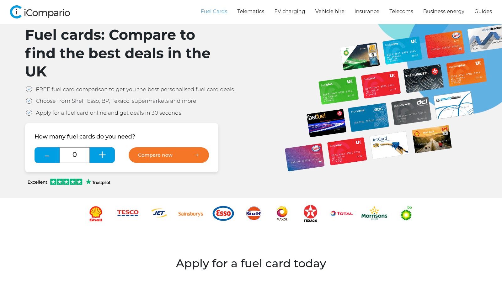 Bezoek iCompario om tankkaartopties te vergelijken.