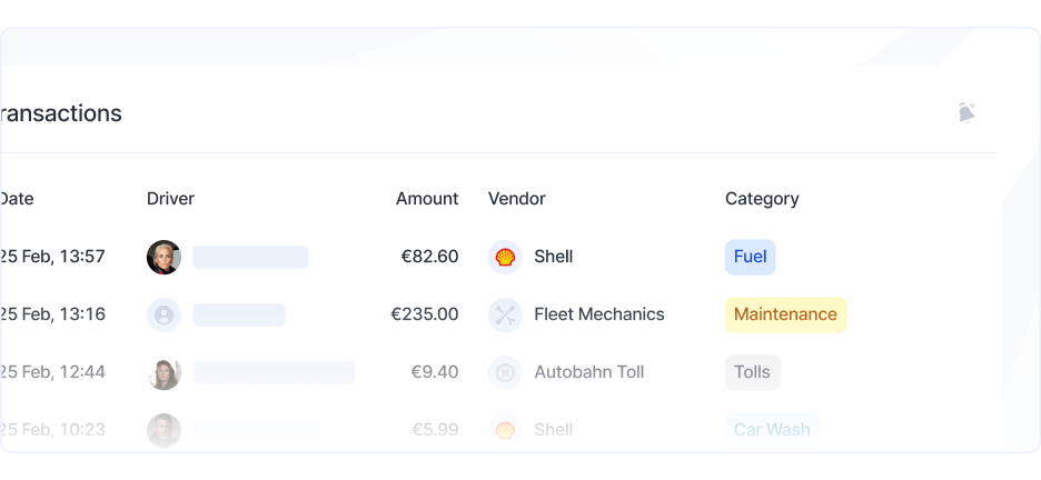 Volg elke wagenparkuitgave in realtime — geen verrassingen meer aan het einde van de maand.